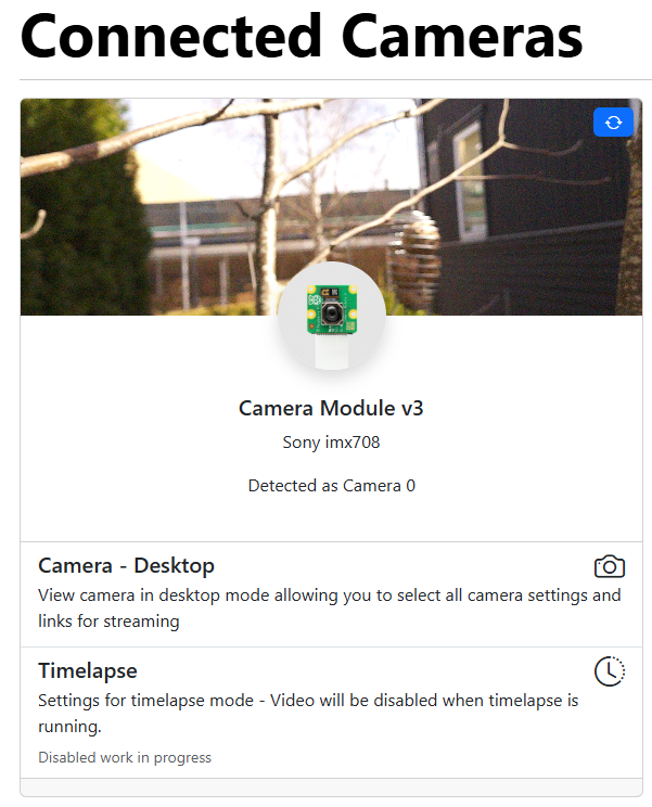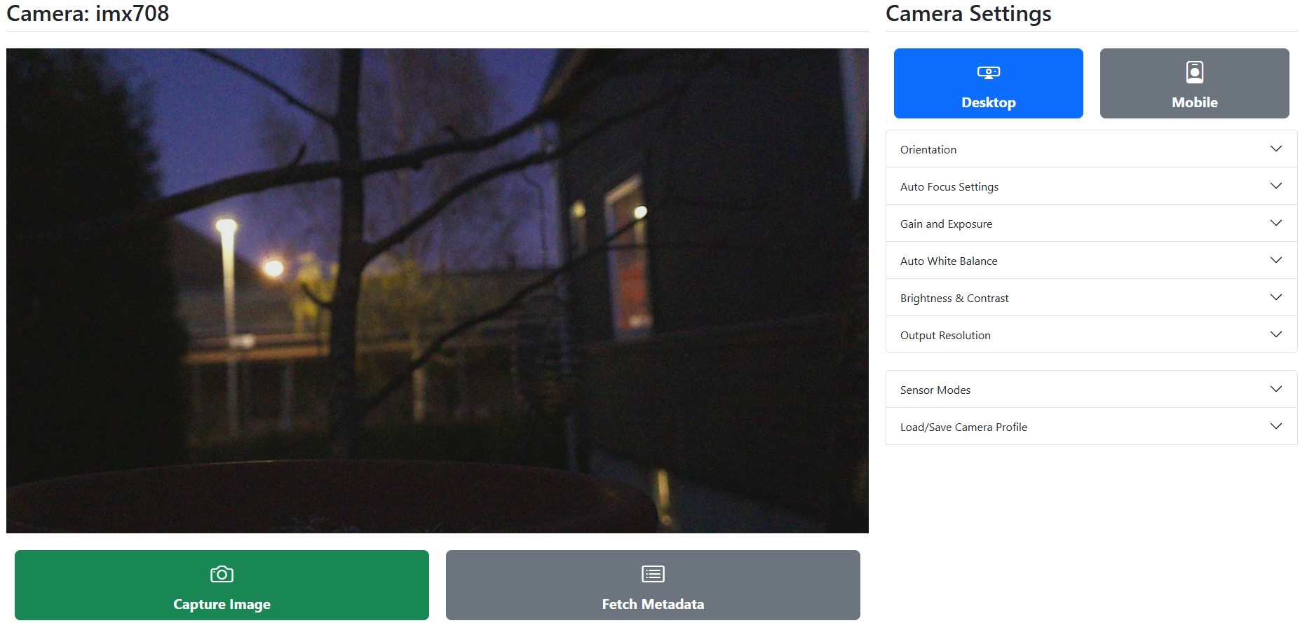 CamUI app’s camera page in desktop mode.