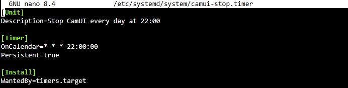 CamUI app’s landing page