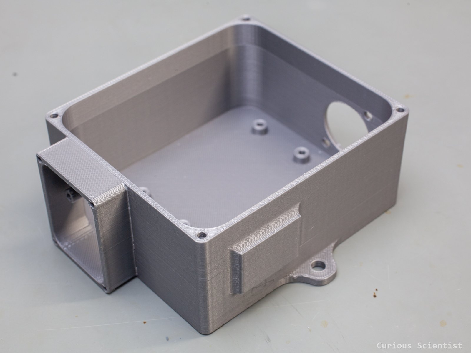 Empty enclosure without the lid and the camera shield