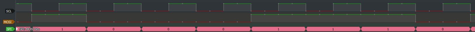 After thinking a little bit, I figured that this protocol could be implemented with the help of SPI. SPI has the speed we need, and it can push out bytes with very strict timing. Just what we need. I have already made an introductory video and article on the SPI communication, so I won’t repeat the whole thing there. I will just reiterate a few lines.