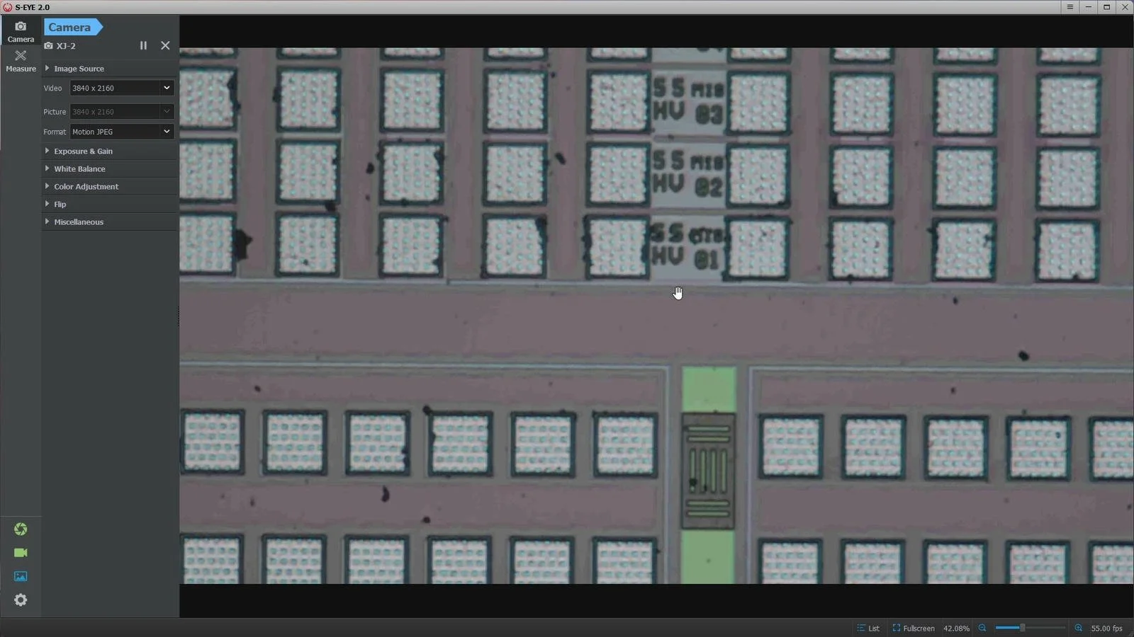 The user interface is controlled by the mouse that came with the camera. However, the mouse can only be used when the camera is used via its HDMI port. When the camera is used in USB mode, there is dedicated software called S-Eye that can be used to control the camera and its settings. Or, you can even use the camera in USB mode via OBS, but then you can only capture its output. You won’t be able to use the measuring tools and other utilities through OBS. But more on this later.