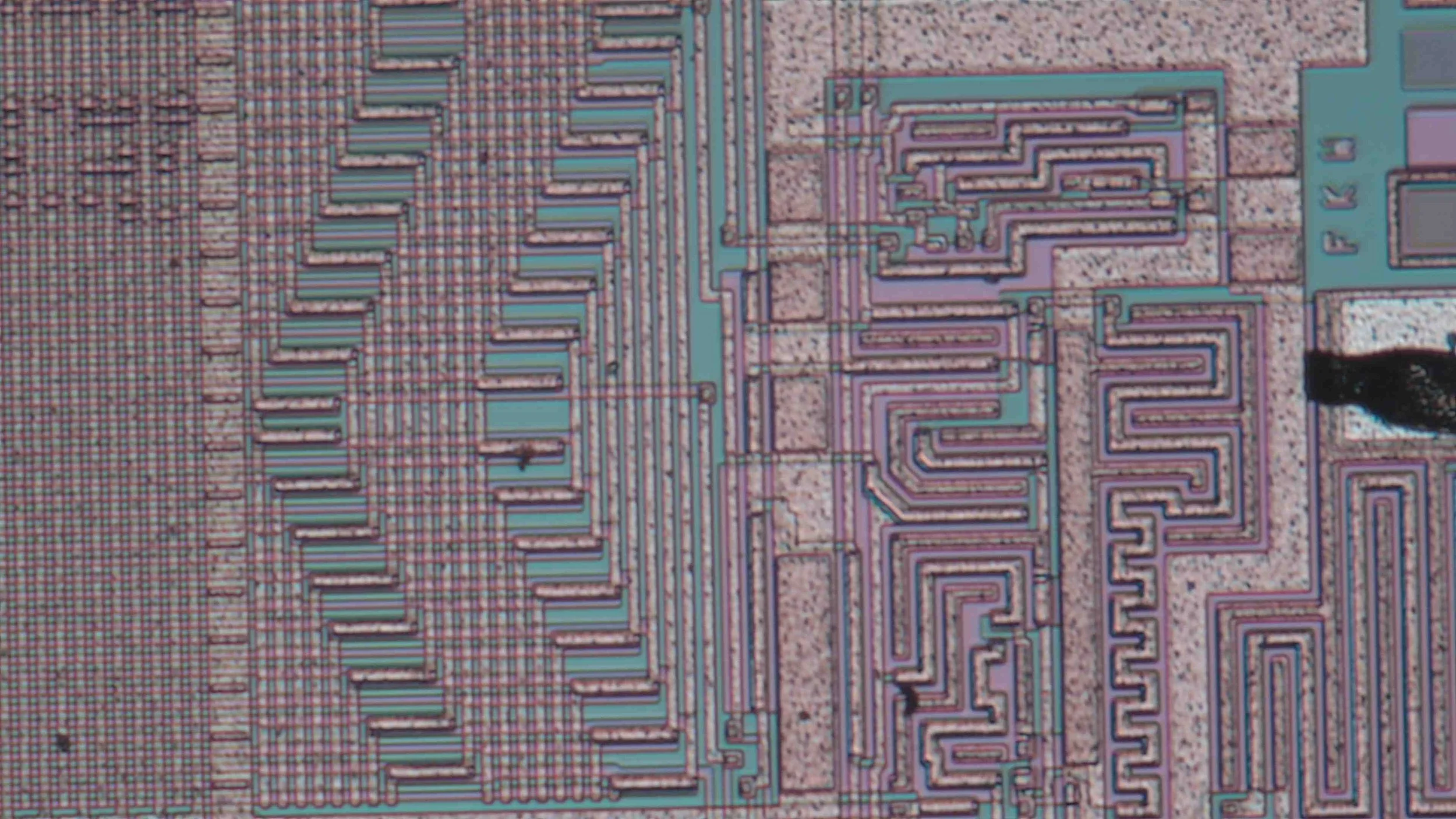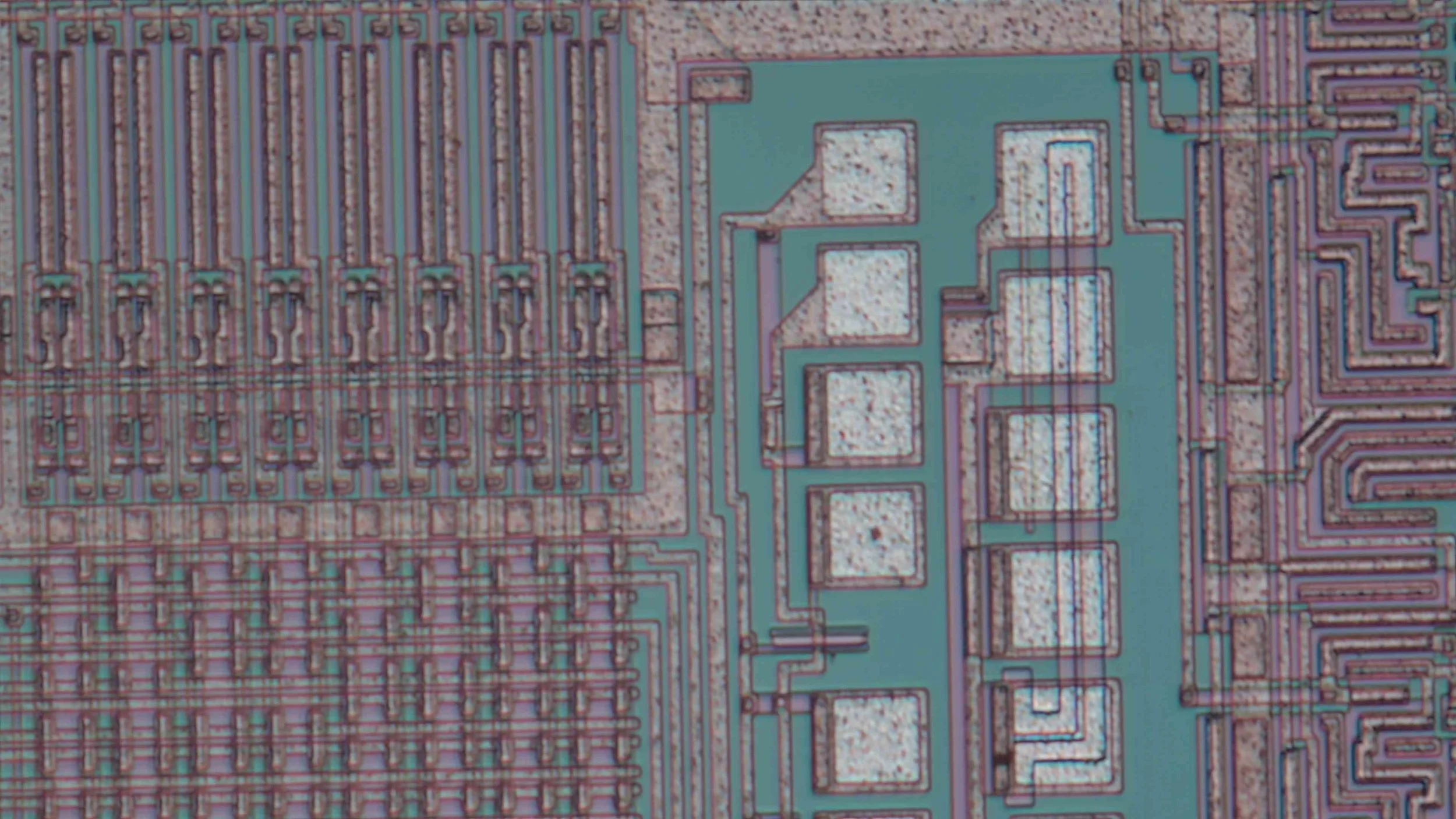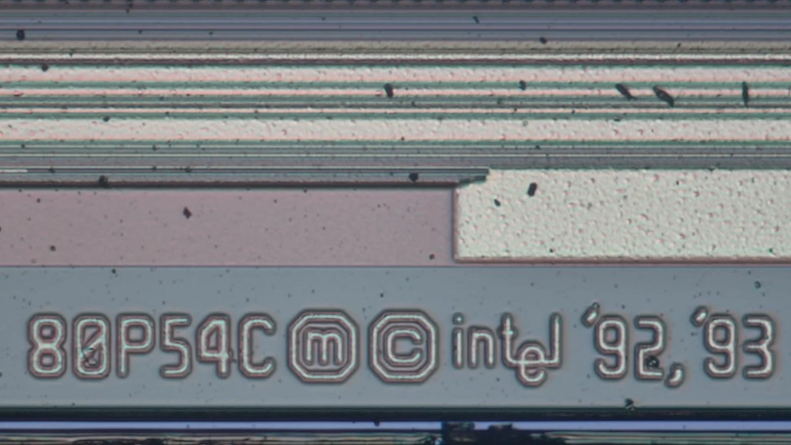 Menu dial. The background picture is a structure of a chip under the microscope.
